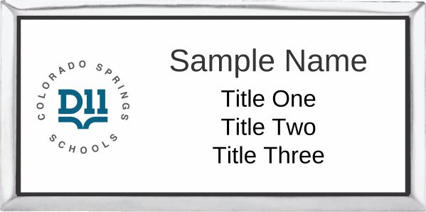 - Colorado Springs Schools D11 White Silver Framed Badge