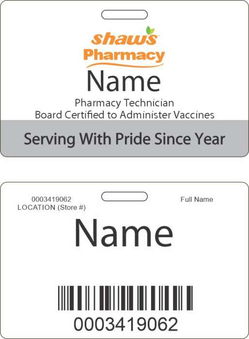 - Shaws Pharmacy Technician and Vaccine ID Badge (MAINE STORES ONLY)